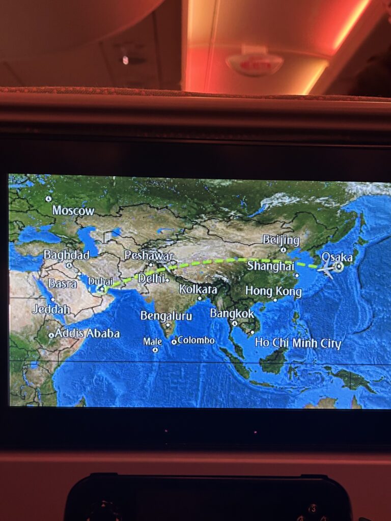 まずは関西国際空港から経由地のドバイまで約11時間!